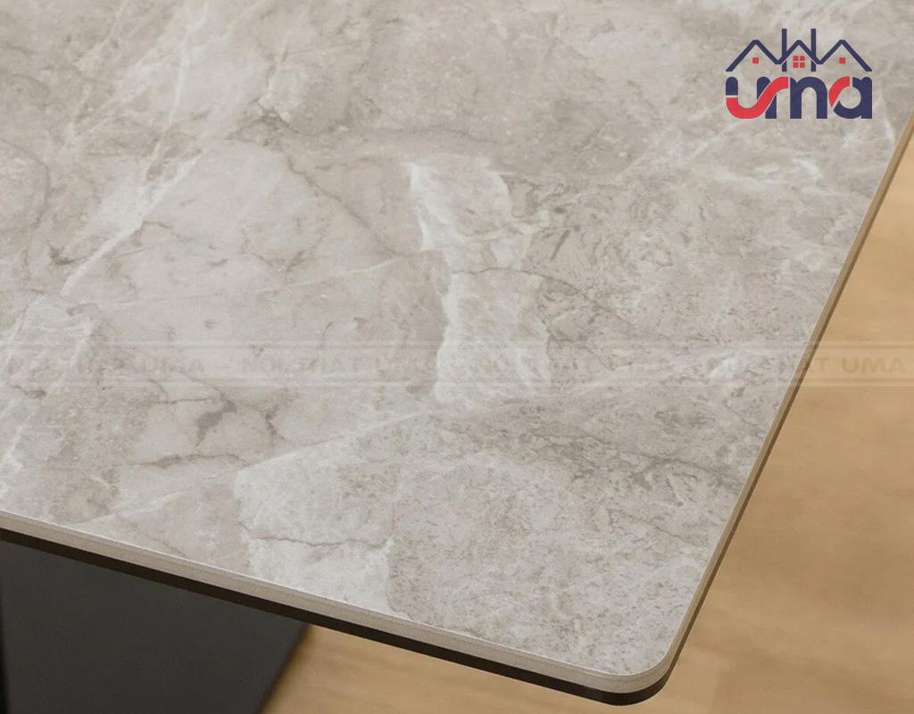 - Mặt bàn bằng gốm mỏng nhẹ, sang trọng, chống trầy xước, chịu nhiệt và dễ dàng vệ sinh, đảm bảo tính thẩm mỹ và công năng.