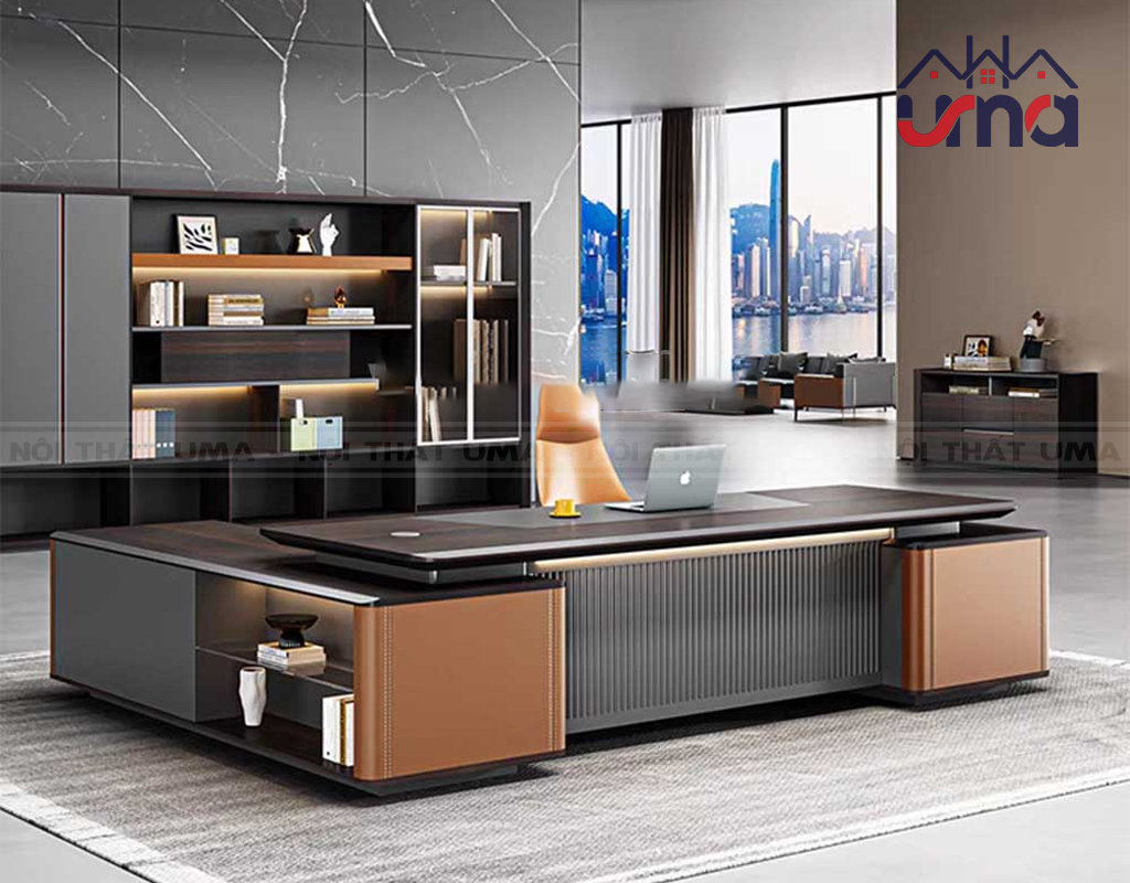 Mẫu bàn giám đốc gỗ MDF có tủ hiện đại BGD008 của nội thất UMA là đại diện tiêu biểu cho phong cách lãnh đạo hiện đại – sang trọng – quyền lực. Thiết kế mạnh mẽ kết hợp cùng chất liệu cao cấp, mẫu bàn này không chỉ làm nổi bật vị thế của người sử dụng mà còn thể hiện sự đầu tư chỉn chu cho không gian làm việc đẳng cấp.