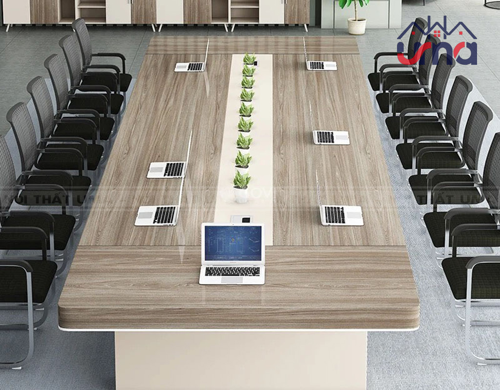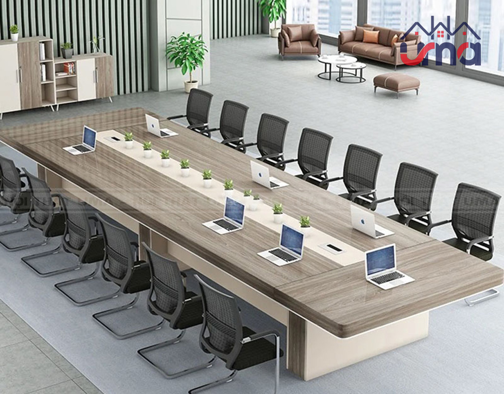 - Kiểu dáng chữ nhật dài, phù hợp cho các phòng họp đông người, mang đến sự thuận tiện trong trao đổi và làm việc nhóm.