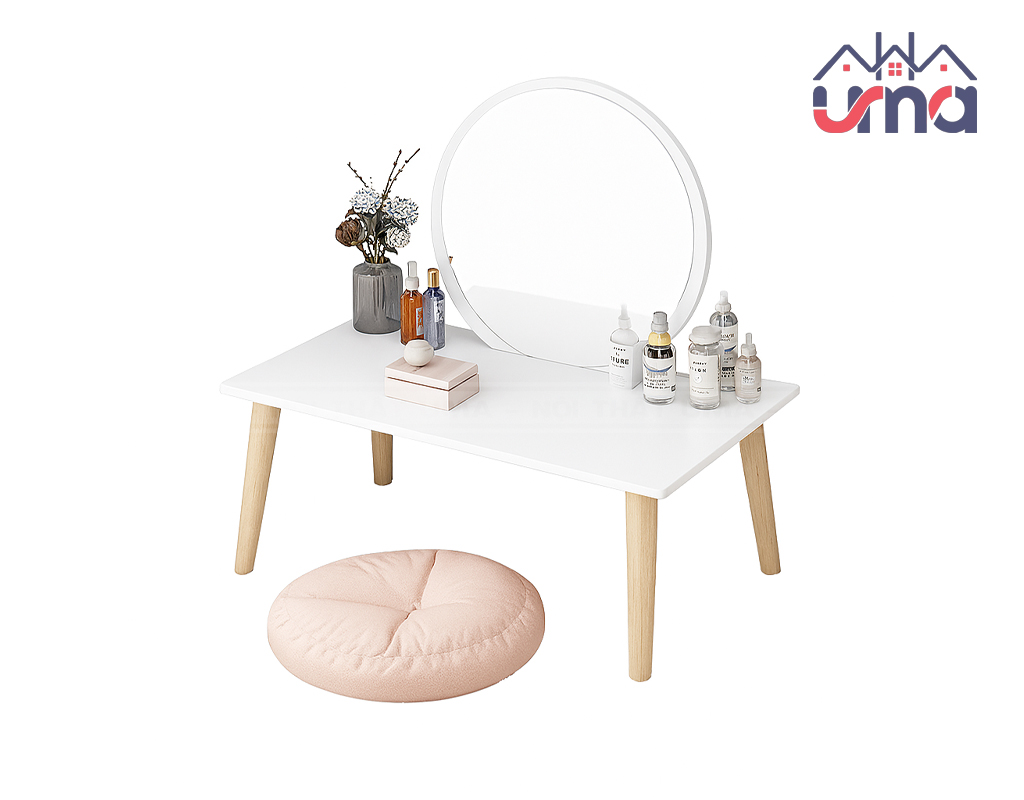 - Thiết kế của mẫu bàn trang điểm này theo kiểu ngồi bệt tối giản, nhỏ gọn, phù hợp cho những không gian khiêm tốn.