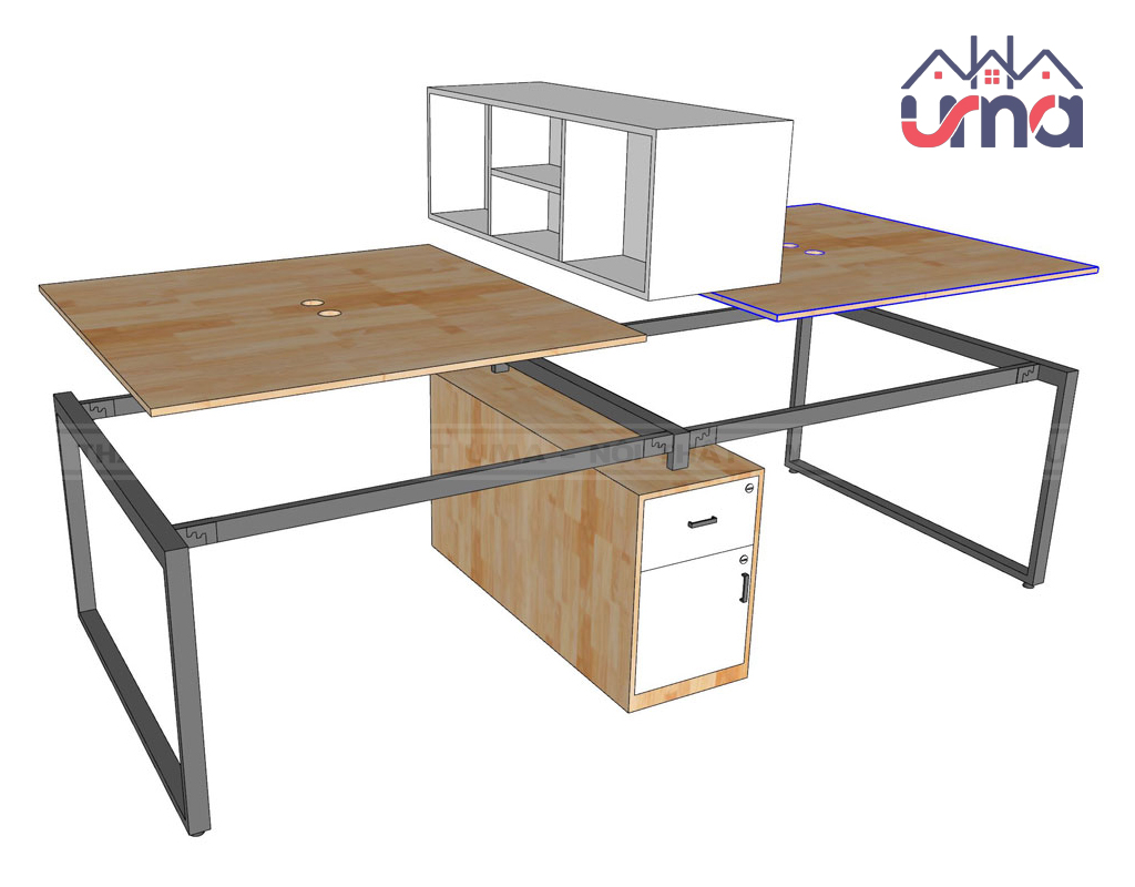 Tổng quan về cụm bàn 4 người làm việc chân kết hợp tủ CB4N013