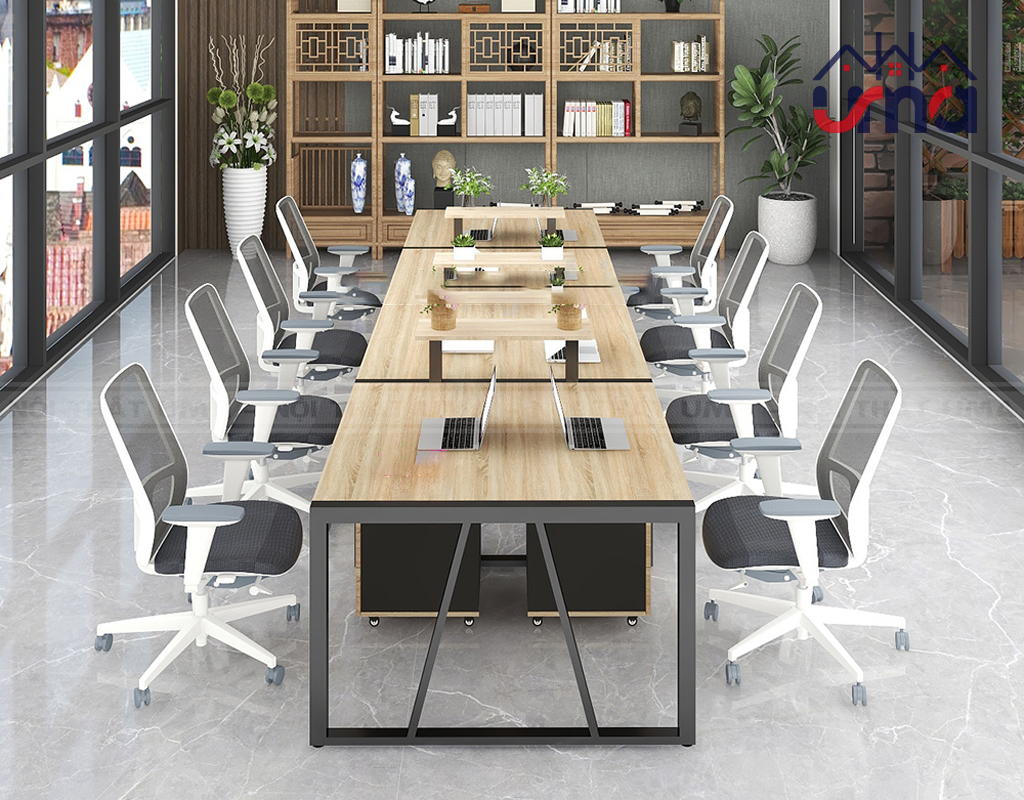 - Cụm bàn 8 người của UMA Vietnam này chia thành 4 cụm đôi, bố trí thành hai dãy song song đối diện nhau.