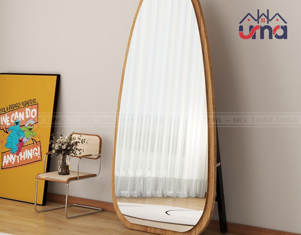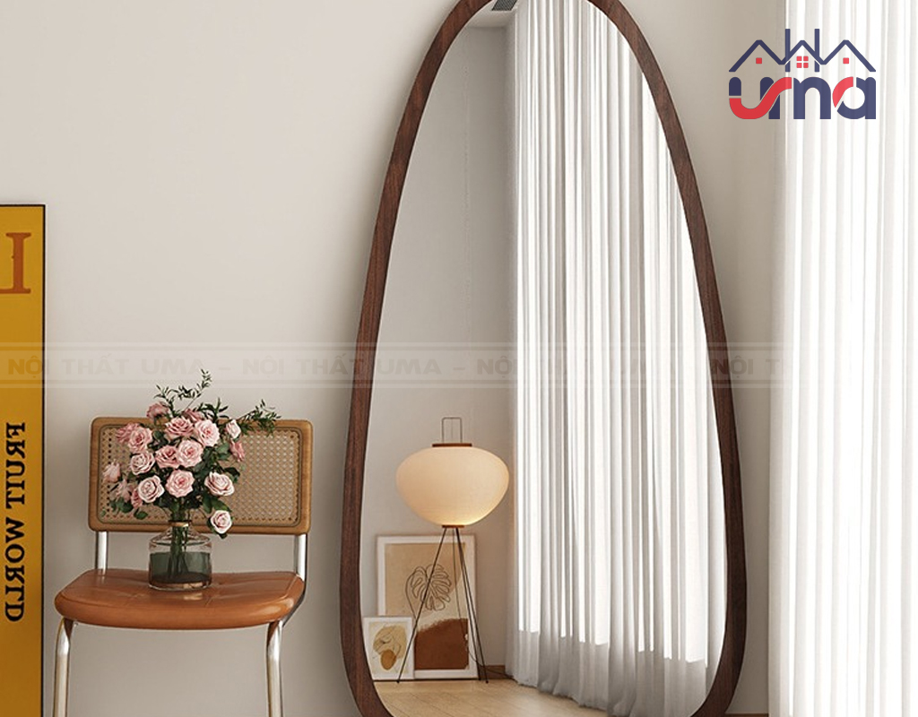Gương soi toàn thân khung gỗ thẩm mỹ G035 là mẫu gương nổi bật trong bộ sưu tập nội thất nghệ thuật tại UMA.vn, gây ấn tượng mạnh bởi kiểu dáng tự do phi đối xứng và khung gỗ Tần Bì tự nhiên cao cấp. Thiết kế này không chỉ phục vụ nhu cầu soi toàn thân tiện lợi mà còn là một điểm nhấn sáng tạo, nâng tầm thẩm mỹ cho mọi không gian sống.