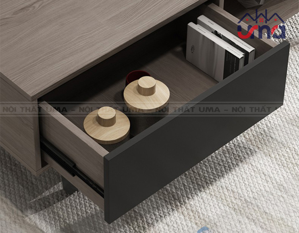 - Cấu trúc tiện dụng: Hai cánh tủ đóng kín cùng hai hộc mở trung tâm phù hợp để đầu thu, sách hoặc vật dụng trang trí.