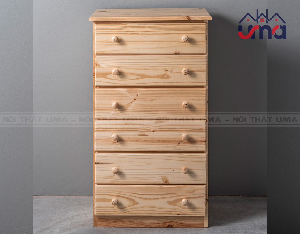 - Gỗ thông tự nhiên 100%: Toàn bộ tủ của UMA Vietnam này được chế tác từ gỗ thông tự nhiên đã qua xử lý chống cong vênh, mối mọt. Đây là loại gỗ nhẹ, dễ di chuyển nhưng vẫn đảm bảo độ bền và khả năng chịu lực tốt.